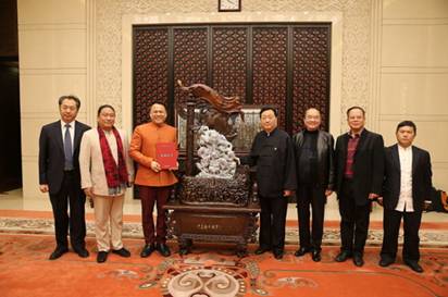 11月17日,广东省工艺美术大师叶福欢先生向中国国家博物馆捐赠翡翠玉雕《中华龙?中国梦》仪式在国家博物馆贵宾厅举办,国家博物馆馆长吕章申代表国家博物馆接受了捐赠并向捐赠者颁发了收藏证书。