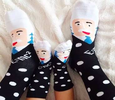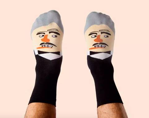 除此之外,每只袜子都有话要说,他们都被配上了该名人语录改编的 ChattyFeet 版语录,皮得很。