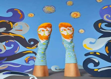 他们的幽默感从每一款袜子的角色贯穿到它们的名字:Feetasso (西班牙画家毕加索 Picasso)、David Sock-Knee(英国画家大卫·霍克尼 David Hockney)、Andy SockHole (美国艺术家安迪·沃霍尔 Andy Warhol)、Brat Feet (美国演员布拉德·皮特 Brant Pitt)……