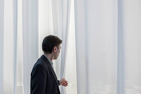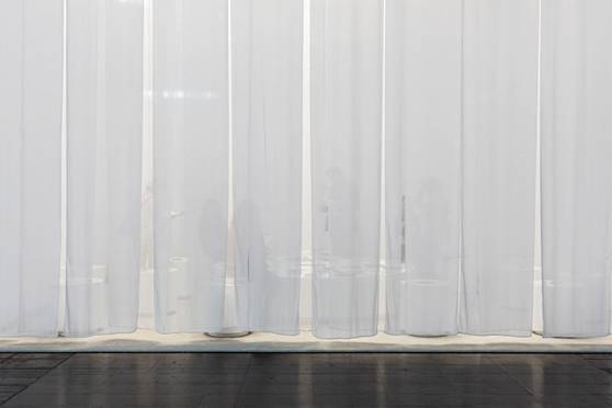 ▼展馆四周围绕着 7 米高的透明幕帘,thespace is surrounded by 7-meter high white, transparent curtains