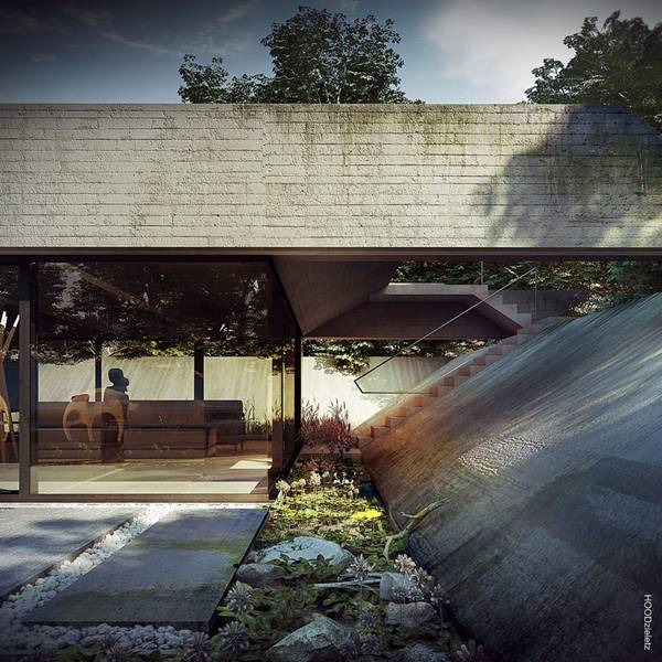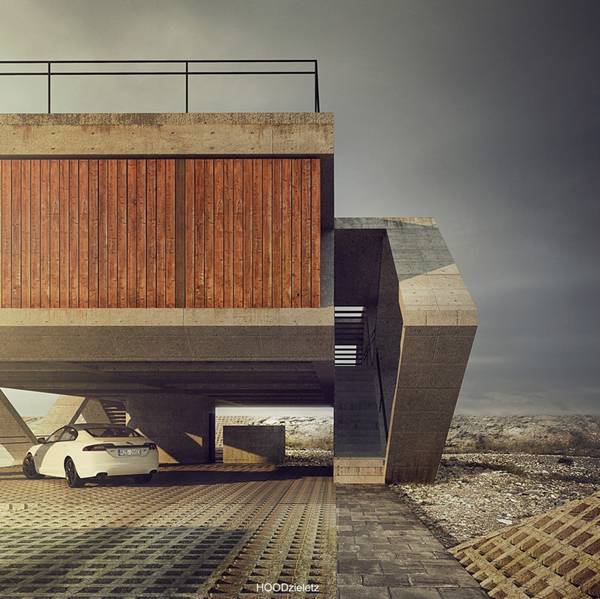 在国外设计师HOODzielec的博客上,我们发现了大量渲染习作。这些建筑大多是作者臆想出来的房子,不过却可以从其中一些看出一些大师经典建筑的影子,例如柯布西耶、安藤忠雄等。