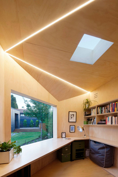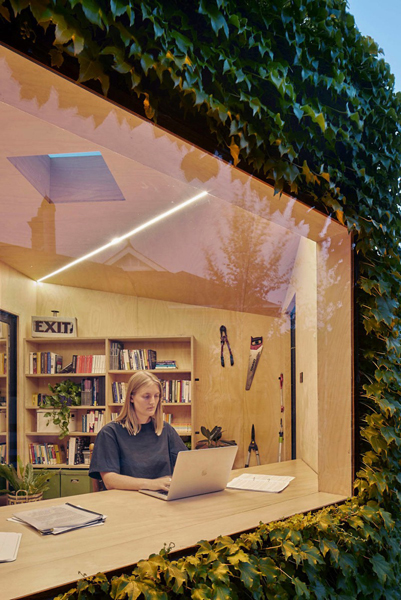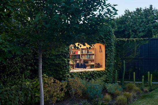 来自澳大利亚墨尔本的Matt Gibson Architecture + Design工作室设计了一座被绿色包裹的小木屋。木屋的主人是一位当地的女作家,这里将作为她独自的创作空间。整座木屋被爬藤爬满,看上去毛茸茸的,只露出一面大大的玻璃窗。作家的工作台位于窗前,整个房子就像由叶子构成的一般,非常具有童话效果。