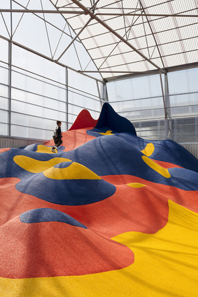 这座占地98平方米、高3.5米的“山丘”基于一个木制框架搭建而成,其表面覆盖以EPDM橡胶颗粒。这一介于游乐场和艺术装置之间的作品为公众创造了一个自由的互动空间,穿行于波动的“山丘”间,每个人都将找到一份属于自己的乐趣。