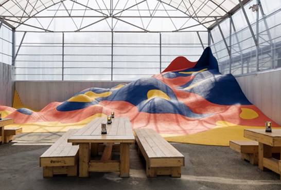 “山丘”(La Colline)是Appelle-moi Papa工作室近期为法国南特的餐厅La Cantine du Voyage设计的一个景观装置。“山丘”以其波浪起伏的形态和活泼的色彩构建了一个奇思妙想的世界。不论老人还是孩子,都可以在这片七彩的乐园中尽情攀登和游戏。