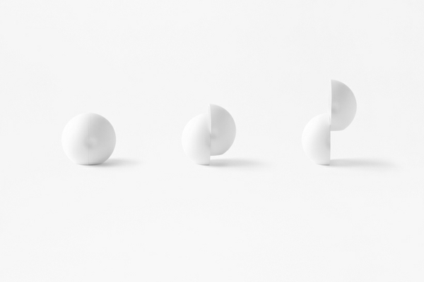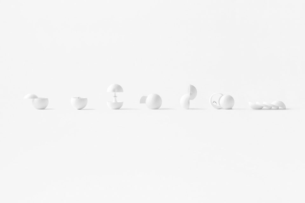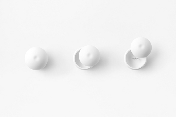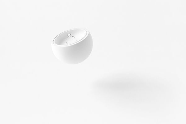 通过对含氟聚合物性能的研究与应用,诞生了这一系列的戒指盒设计。闭合时,所有七种戒指盒都是直径 65mm 的白色球体,而其内部却藏着各不相同的机关。这些机关决定了你会用何种手势打开盒子,将盒中珍宝以独一无二的方式呈现在爱人面前。