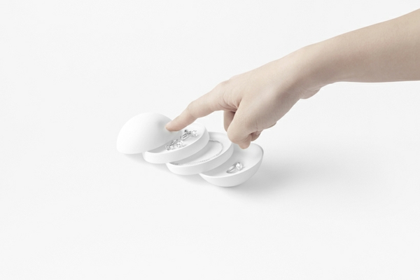 Nendo 利用这种特殊材料革新了戒指盒的打开方式,而非仅仅设计一件物品。