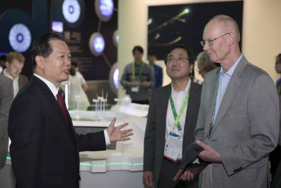 7月11日,国际展览局主席克里斯滕森、副秘书长科肯切斯率领国际展览局代表团到中国馆考察,中国馆政府代表、中国贸促会副会长王锦珍陪同。