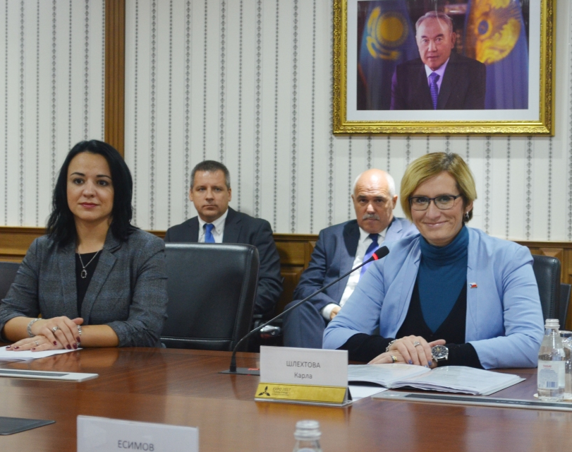 2017年阿斯塔纳世博会国家股份有限公司董事会主席艾哈迈占?叶西莫夫与捷克共和国区域发展部长卡尔拉?什列赫托娃今天在阿斯塔纳进行了一次会议。