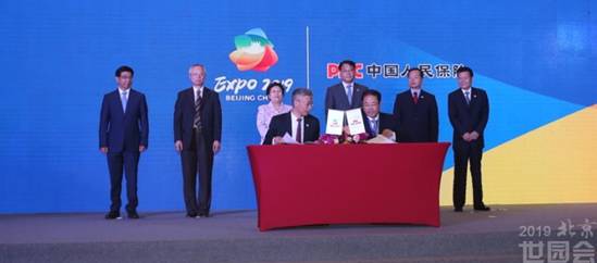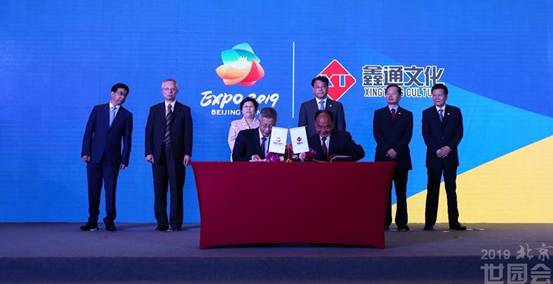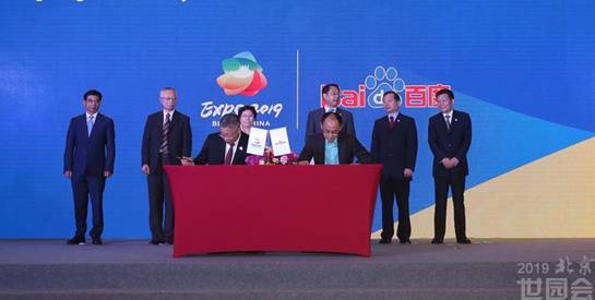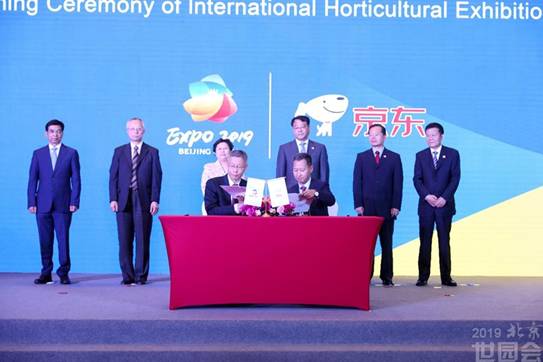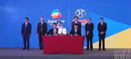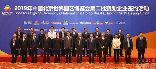 5月17日,2019年中国北京世界园艺博览会第二批赞助企业签约活动在北京饭店举行。继去年4月首批5家全球合作伙伴中国国际航空股份有限公司、中青旅控股股份有限公司、北京银行股份有限公司、北京顺鑫控股集团有限公司、万科企业股份有限公司签约之后,北京世园会品牌赞助名单又添新成员。北京汽车集团有限公司、北京百度网讯科技有限公司、北京京东世纪贸易有限公司、中国电信股份有限公司北京分公司成为北京世园会全球合作伙伴;中国人民财产保险股份有限公司北京市分公司、北京歌华大型文化活动中心有限公司、北京花乡花木集团有限公司和云南鑫通文化传播有限公司成为北京世园会高级赞助商。