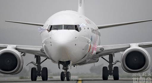 花开盛世号”机型为B737-800,机身选用北京市花“月季”作为主要视觉元素,每朵颜色分为三个层次,呈现出水彩的效果,色彩清新,美观大气。机身喷涂以“花”为主元素,契合了园艺博览会的主题,盛开的花卉藤蔓环绕整个机身,优雅唯美。