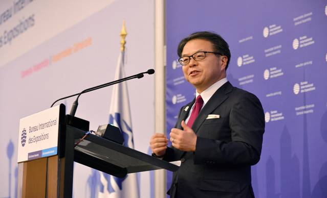 大阪世博会将尽量吸引企业参与。榊原定征先生对大会与会代表说:“私有部门应在解决全球问题方面发挥积极作用。”日本代表团展示了大阪世博园区拟建的人工岛梦洲视频影响。在视频中,卡通人物口袋怪兽与安倍晋三首相一同参观世博场馆,首相强调了国家和地方对大阪主办世博会的支持。安倍首相最后表示,世博会不仅仅是为了日本,而是“激发和激励来自世界各地的儿童”。