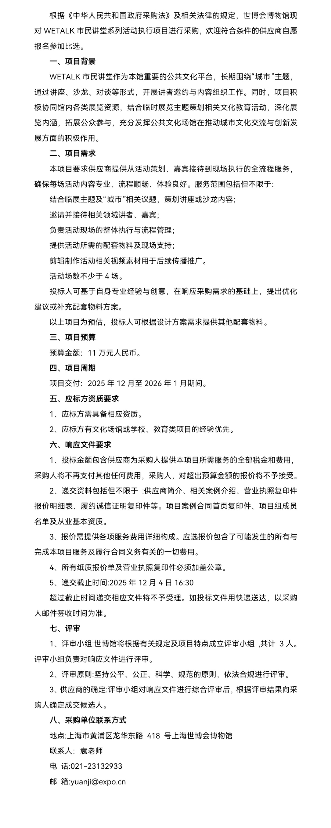 WETALK市民讲堂系列活动执行采购公告