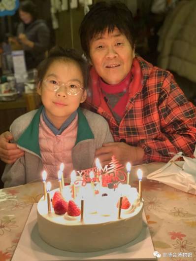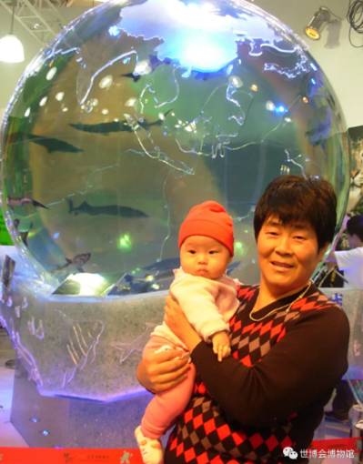 外婆抱着萱萱在世博会上
