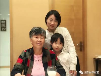 徐丹(左一)、萱萱和外婆在中国馆前的合影