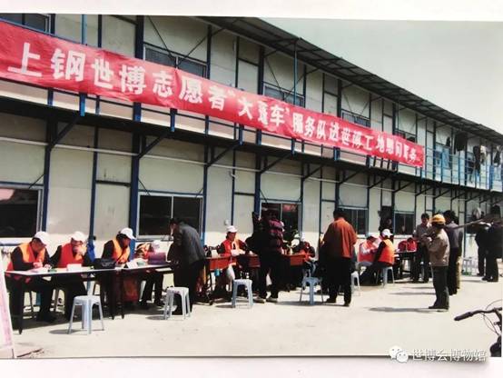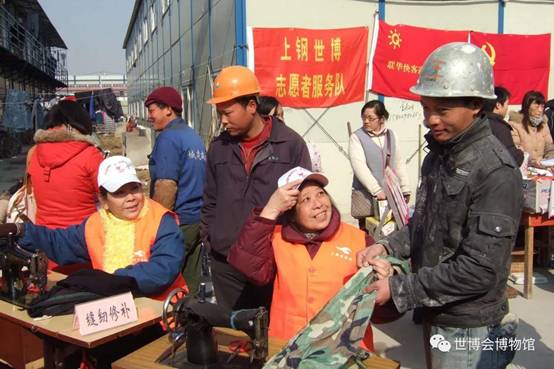 记得在世博会建设时期,我们作为上钢社区的世博志愿者到世博工地为建设者们提供服务,比如给他们缝补衣服、修鞋子和理发等。