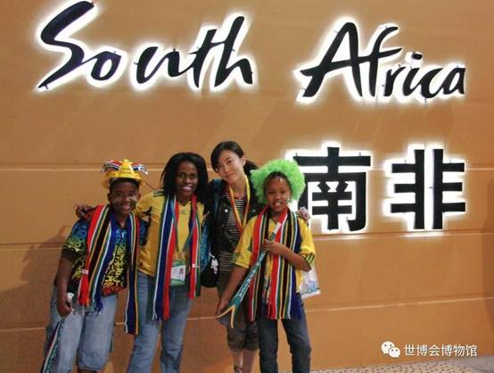 2010年凌安琪在上海世博会南非馆前留影