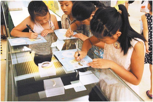 重庆三峡博物馆以“冰清玉洁——重庆中国三峡博物馆馆藏玉器展”作为“清凉帖”,特别设计制作了“琢玉成器”手工学习纸,邀请众多家庭来到博物馆,体验清凉又精致的七夕节日。
