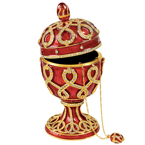 俄罗斯皇室蛋雕首饰盒与吊坠22K 镀金,手工镶嵌珐琅、施华洛世奇水晶,蛋盒高12cm,直径6.36cm;$395;大都会博物馆商店