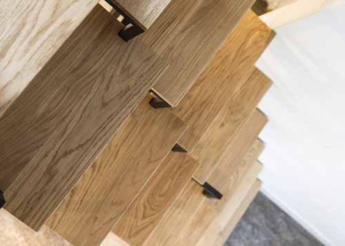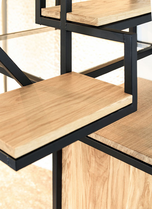 这款楼梯名为 Object Élevé,同橡木实木和涂有黑漆的钢框架做成,位于设计师 Just Haasnoot 的家里。