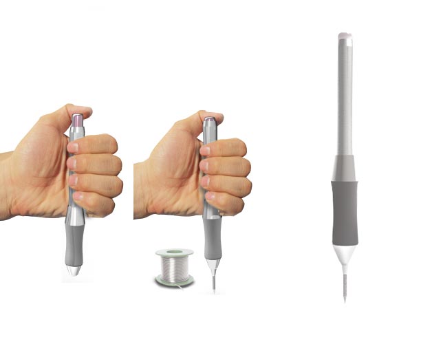 设计师Kim Miae的作品「Tik Tik 」电烙铁的设计灵感来源于我们经常使用的圆珠笔,笔尖可以收缩,在移动过程中可以按下顶部的按钮,可以将发热部分收容到内部,这样不至于暴露危险。