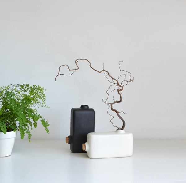这款花瓶用陶瓷做成,黑白亮色可选。