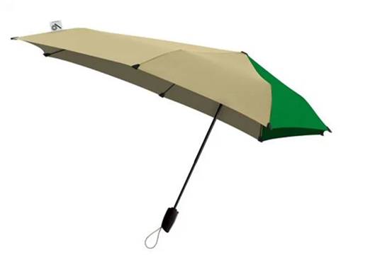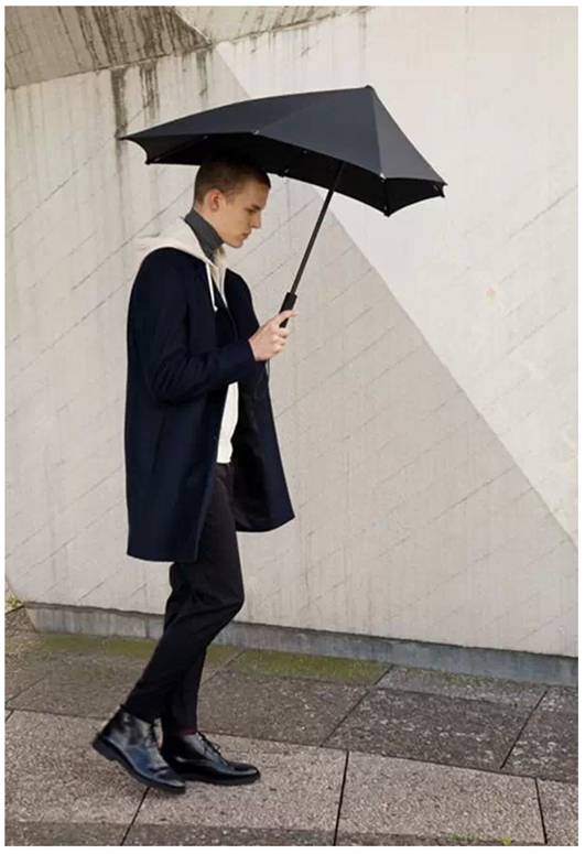 SENZ 雨伞确实是当之无愧的。一般的雨伞遇到强风会被吹翻,而 SENZ 雨伞却能够抵住 70 英里每小时的风速不变形。这其中的奥秘就在于Yoske Nishiumi 为 SENZ 设计的独一无二的造型上。 SENZ 有着不对称的遮蓬、尾部逐渐变窄,它运用了空气动力学的原理,能够让风从伞的两侧吹过,从而使它能够在狂风暴雨中保持自身稳定平衡不被吹翻。即使是在强风中,用户也可以用两根手指掌握住它,并且从头到脚不被雨打湿。