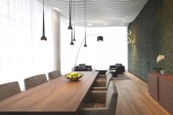 Erich Gassmann and Tina Abmann设计的一个简单而精致休息室,用现代化实施进行装修,比较巧妙地融合了现代和传统的感官视觉审美。 使用原生树林,还有的材料入毛毡,皮革,和大面积的橡木木板,视觉方面最大限度地利用日光光照,映照出非常纯洁蓝色巴伐利亚的天空,与整个休息室相得益彰。