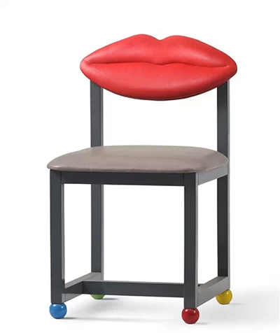 这是一个经典的款式,后来也有许多椅子模仿这种款式,设计师 Rita Taskinen 在 1983 年设计了 Kiss chair,运用的大胆的颜色和形状,饱含热情,四条腿的球球又不失可爱。