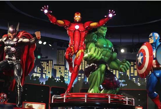 漫威专区可以看到等同真人大小的漫威超级英雄雕像,包括钢铁侠、雷神、美国队长和绿巨人。这些雕像都是由雕塑家全手工制作,专为上海迪士尼旗舰店量身打造。