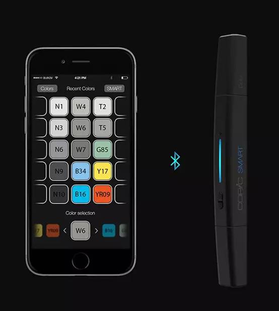 Copic Marker是款智能记号笔,一支笔就可以具备你需要使用的所有颜色。这款智能记号笔采用可更换的智能墨盒来实现颜色的替换,并且通过手机APP来控制。当你想要一种颜色做记号的时候,就可以根据APP上的提示来自行选择颜色。