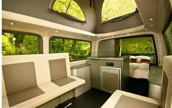以多用途MPV——大众T5蓬式货车为主体,英国领先的露营车公司Danbury Motorcaravans改造并推出了这款名为Doubleback的可折叠旅行车。在平时,Doubleback外观与寻常的大众T5并无太大差别,但实际上设计师们却在车厢中嵌入了一个电动的可伸缩车体,到了户外,这部分平时隐藏起来的车体就可以往外推出,使得车体空间整整多出一倍,为户外露营或旅行创建出一间舒适的小卧房。