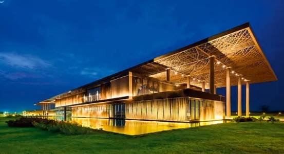 由土耳其tabanlioglu建筑设计事务所设计的达喀尔国际会议中心坐落于西非国家塞内加尔,日前已投入使用。该建筑的设计灵感来自于当地的猴面包树,建筑整体就像是被遮蔽在古老的树下,连贯的屋顶盖在独特的体量之上,为它抵御太阳直射和强风侵袭。长方形体块嵌入半透明的金属立面中,彼此间通过桥相接,为其提供物理上的联系和寓意上的表达。