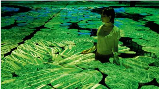 以“和谐多样性”为主题,Teamlab在2015米兰世博会日本馆内举办两场艺术展览。该互动装置作品规模有两个展间大小,由AB全景投影空间组成,参观者要穿过这片技术的海洋,才能抵达一条由数字信息组成的瀑布,这里展现了各种有关日本食品的知识。