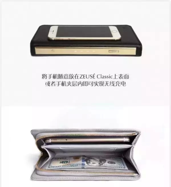 这款手包的虽然作为钱包大了点,但是好在大有大的好处,它可以适用于苹果、三星、华为等多个型号的手机。只要你的手机在这个钱包的15.2毫米范围内,都可以无障碍充电。不过充电时间略长,为一部iPhone 5S完全充电需要 1小时50分钟。