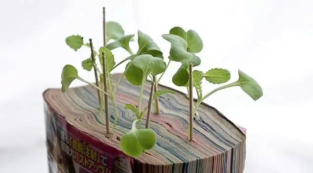 家里如果有很多废旧的书不舍得扔掉,可以学Koshi Kawachi,试试在书里种小苗呀。