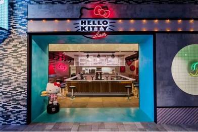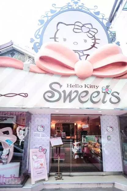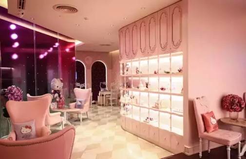 Hello Kitty已经41岁了,但因为形象甜美,始终被认为是少女心的代表,开发的产品和跨界合作也都很有女性化特征。开在世界各地的Hello Kitty周边商店、咖啡馆和餐厅,多数被打造成粉嫩的梦幻空间,花哨,又有些张扬。