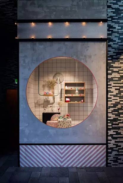 跟其他Hello Kitty餐饮空间比起来,这家餐厅使用了更丰富的颜色,不再是典型的白色与深浅不一的粉红色相搭配。从店铺入口到室内设计,用到深红色、明亮的蓝颜色、粉色并配上黑白交错的几何图纹。其实这种颜色搭配也十分明艳,但它相对要更中性。这对于影响人们对Hello Kitty的印象是很重要的。