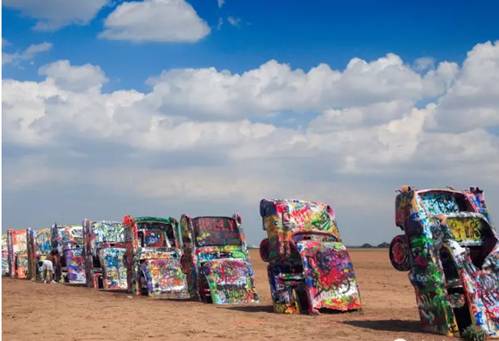 位于美国德克萨斯州阿马里洛西侧66号公路故道、现今的州际40号公路上的凯迪拉克农场绝对是这条路上最著名的风景,凯迪拉克农场建立于1974年。拥有一排半埋的被涂鸦的凯迪拉克汽车,游客们可以自由的在汽车上涂涂画画。它是一个雕塑农场,这些车子都是破旧或报废的。凯迪拉克农场在美国另类文化中经常被提到,如动画片《汽车总动员》。