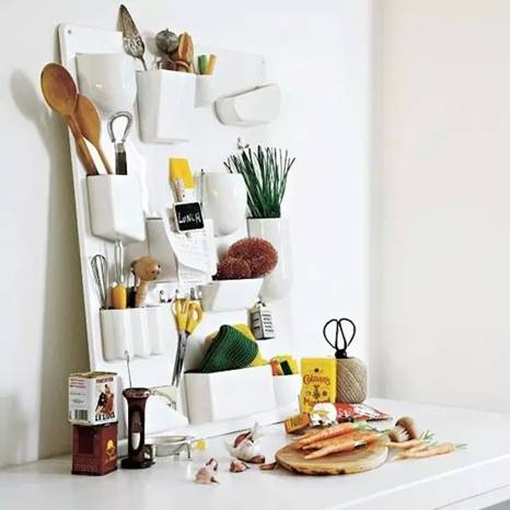 那些如果没有合适的存储空间,通常就会飞得满屋子都是的小工具都可以被它收纳在内。钥匙或者其它小物件可以挂在钩子上,便签纸和名片也可以在一个金属夹子那儿找到它们的位置。