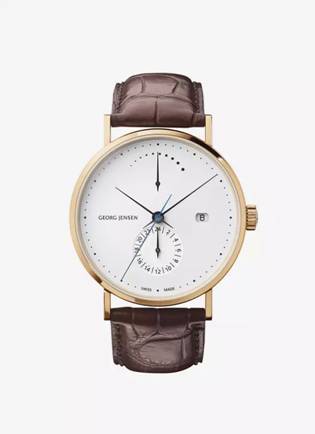 这是设计师Henning Koppel 1977年的作品,出自丹麦顶级设计品牌 Georg Jensen。精致的白色珐琅表盘,黑色指针,银色边框,搭配着一条墨绿色的鳄鱼皮表带。醒目的简洁纯粹美学和机械移动的丰富细节,大抵就是对一款腕表最标准的要求,The Keppel都做到了。2015年底,Georg Jensen把它拿出来重新贩售的理由有两个,一是换装了现在的机械机芯,二则是经典。