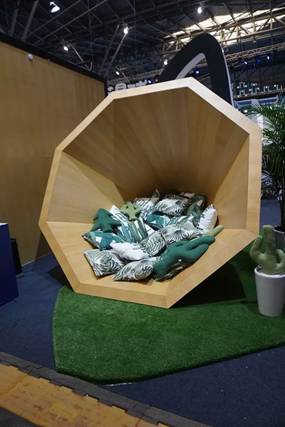“有所”是三位毕业于清华大学美术学院的三位90后创立的家具品牌,在此次展会上,他们展示了一个“牧场”场景,其代表性设计“咩咩坐墩”、“嘟嘟坐墩”、“奶牛坐墩”等一系列以动物形象为设计灵感的坐墩,在一片“草地上”显得可爱且童真,这些设计将原有的单调生活变得更加灵动,从家具中就可以感受美好。