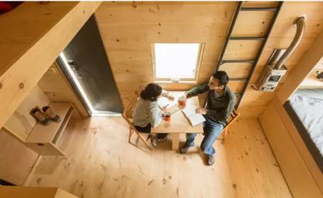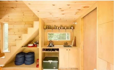 例如位于纽约的度假屋Eleanor,在角落里有一个折叠床。大多数微型房子里为了最大的利用空间都把起居室和客厅合并在了一起。