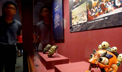 展览中色彩艳丽、表情夸张的傩面具是值得关注的一大亮点,为营造强烈的视觉效果,届时展厅内将设置20余米的傩面具墙展示,各种类型、各种色彩、各种材质的傩面具分布其上,让观众过足眼瘾的同时,近距离感受傩面具之神韵。此外,结合傩戏表演的道具及傩戏服装的展示,专题展厅的负一层将开辟傩戏场景展示的专场,生动地再现傩戏剧目《三英战吕布》的经典场景,让观众置身其中,犹如走进傩戏的小型剧场。