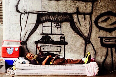 在洛杉矶的贫民窟里,大约有3000到6000名流浪汉。他们无家可归、没有工作,只能在街头风餐露宿。为了让公众更多的关注这些不幸的人们并找到解决方案,日前,一位不愿具名的街头艺术家用手中的喷漆为这里的流浪汉们涂鸦绘出他们心中的愿望——拥有一个家。