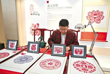 国家会议中心“APEC新闻中心”,非物质遗产展示——剪纸。