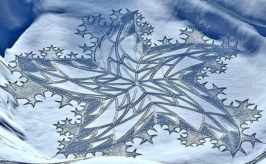 据外媒报道,在加拿大阿尔伯塔省的班夫国家公园,雪地上一幅“狼嚎图”令人叹为观止。这是英国雪鞋艺术家西蒙贝克(Simon Beck)用走路的方式“走”出来的。