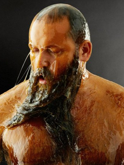 他将大罐蜂蜜从赤裸的模特的头顶浇下,让蜂蜜覆盖模特全身,他说“这看起来他们像是被保存在琥珀中一样”。据悉,摄影师每周都要用掉1000磅蜂蜜来进行拍摄,整整装了20罐。