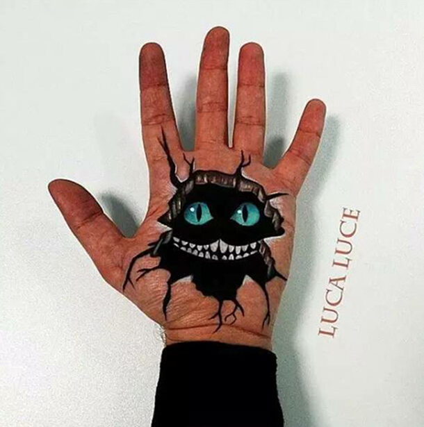LucaLuce作品的超现实性毋庸置疑。不论他选择在手上画什么东西,成品都非常具有超现实感。