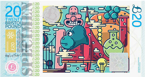 英国布里斯托尔市(Bristol)的20英镑,Orca设计公司设计,票面由趣味性的场景组成。