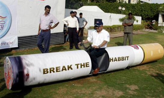 汽车设计师苏达卡尔·亚达夫坐在一辆香烟造型的汽车里